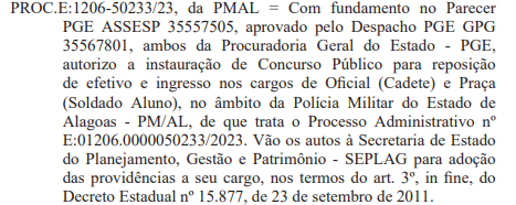 De acordo com o despacho, as 1.060 oportunidades serão disponibilizadas para reforçar o efetivo da PM AL. Do total: